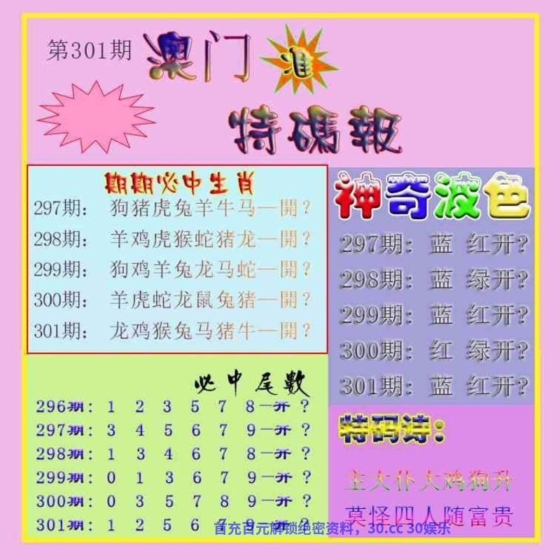 300期:独解傳眞 解:今期生肖三三开,六七扬帆三四出。蓝蓝绿绿中特期,曾说同人不同命。西天路上寻特肖,琐窗风雨三二情。六畜兴旺家中肖,强盗从来图谋利。 送:虎猴猪狗龙马鸡羊 抓住一句解必中特 |